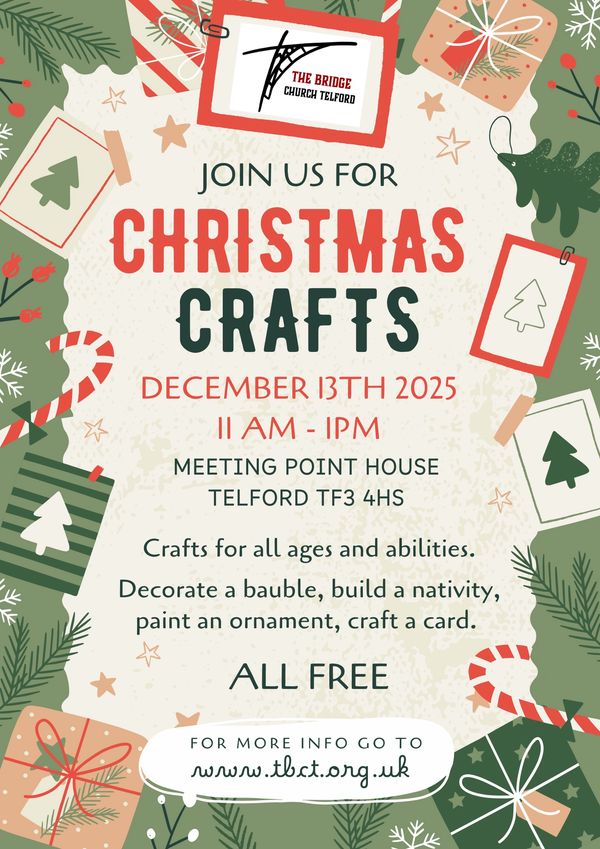 Come and make the craft of your choice - a bauble, a nativity, a card or an ornament. Suitable for all ages.. Make your craft on your own or...
